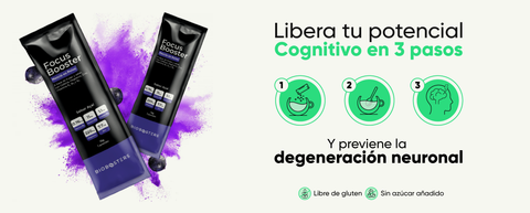 Focus Booster es un alimento que actúa directamente en tu cerebro para mejorar la actividad neuronal, claridad mental y función cognitiva.